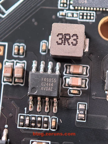 还有一颗型号为 FR9855 的芯片,是一款由 Fitipower Integrated Technology Inc(天钰科技)生产的 同步降压型DC-DC转换器芯片(电源芯片)。