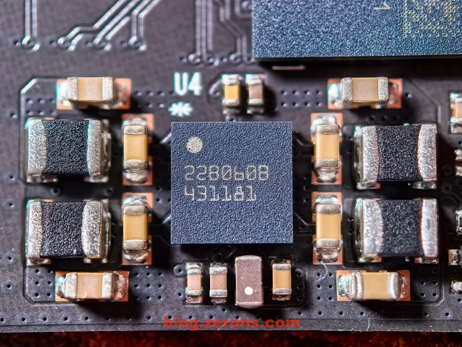 主控右侧丝印是 22B060B 431181 的芯片为PMIC电源控制芯片,四周被MLCC电容包围。