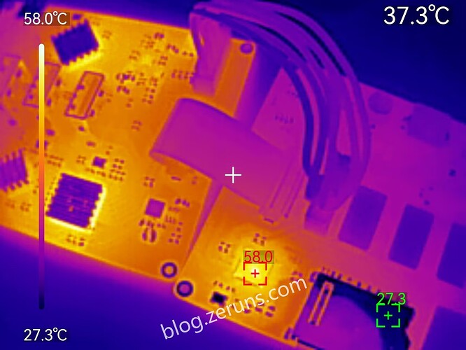 GL3224 chip temperature ~58 °C under full read/write load (ambient ~27 °C)