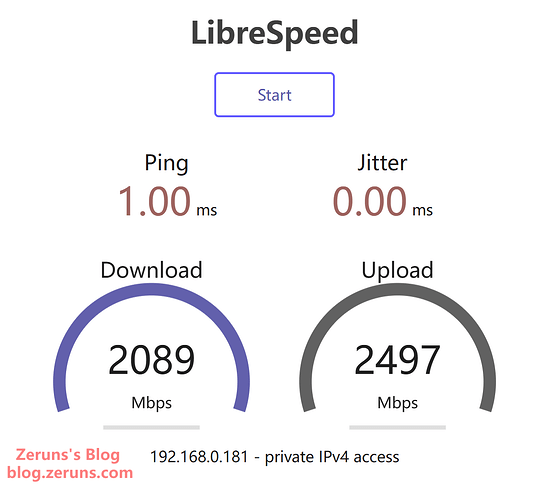 Using an internal speed-test server: 2089 Mbps download, 2497 Mbps upload.