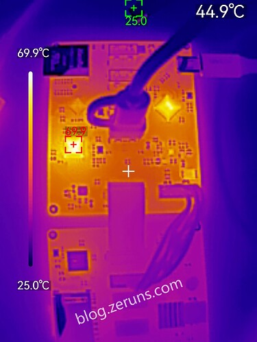 VL822 chip temperature ~70 °C under full read/write load (ambient ~25 °C)