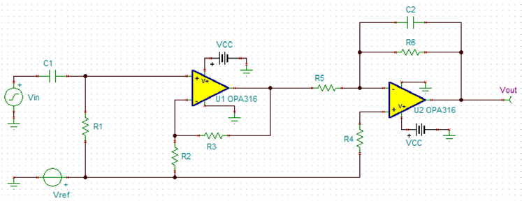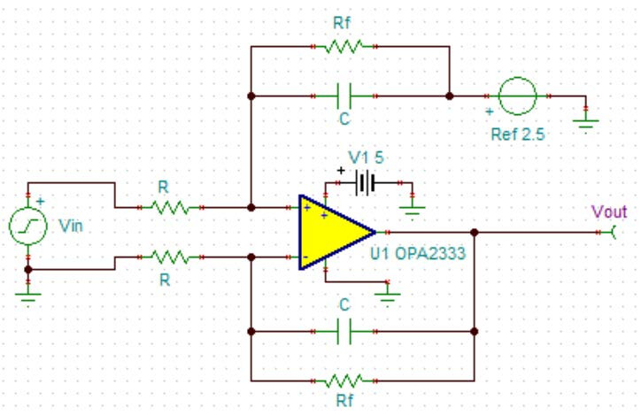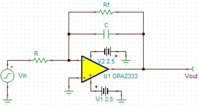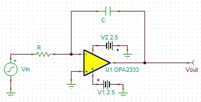 Taking a 50Hz power frequency application as an example, a single-supply integrator circuit is designed as shown in Figure 15. The expected design goal is that the output voltage varies linearly with input current with a proportionality coefficient of 52.4. The Rogowski coil design parameter is 101nH.