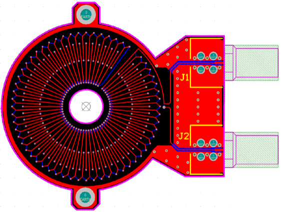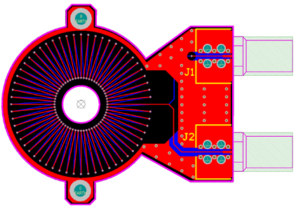 When a very large mutual inductance coefficient is needed with fixed board size, multiple PCB Rogowski coils can be connected in series end-to-end, i.e., connecting the J2 output of Figure 4 to the J1 of the next PCB coil to achieve signal superposition.