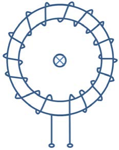 The main parameter of a Rogowski coil is the mutual inductance coefficient M, whose value is primarily related to the number of turns, board thickness, coil inner diameter, and outer diameter. Among these, limited by PCB via size and manufacturing capabilities, the actual number of turns cannot be infinitely large and has certain limitations. The turn count calculation model is shown in Figure 3.