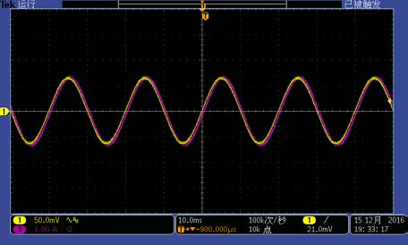 From the previous analysis, the integrator circuit has some phase angle error, which is larger at lower frequencies. Taking the circuit in Figure 8 as an example, at a 50Hz operating frequency, the simulation waveform results are shown in Figure 13. The green curve is the input, and the red curve is the integrator output.