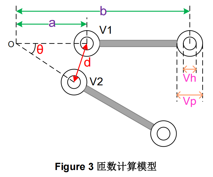From equations (4) and (5), the angle between two connected vias can be derived: