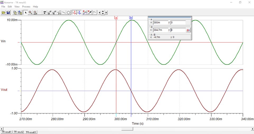 Figure 13 Inverting integrator circuit simulation waveform phase analysis