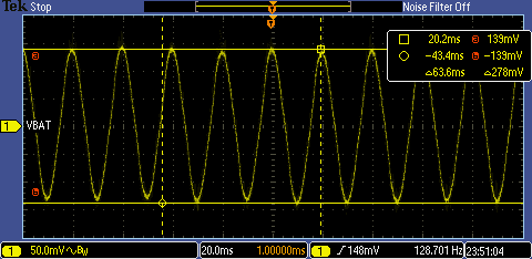 Figure 19 The left image shows the output voltage waveform without interference current, the right image shows the output voltage waveform with interference current