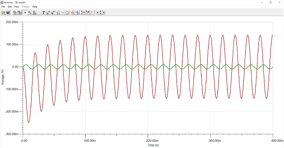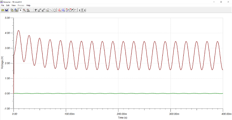 Figure 7 Integrator circuit simulation waveform with parallel resistor
