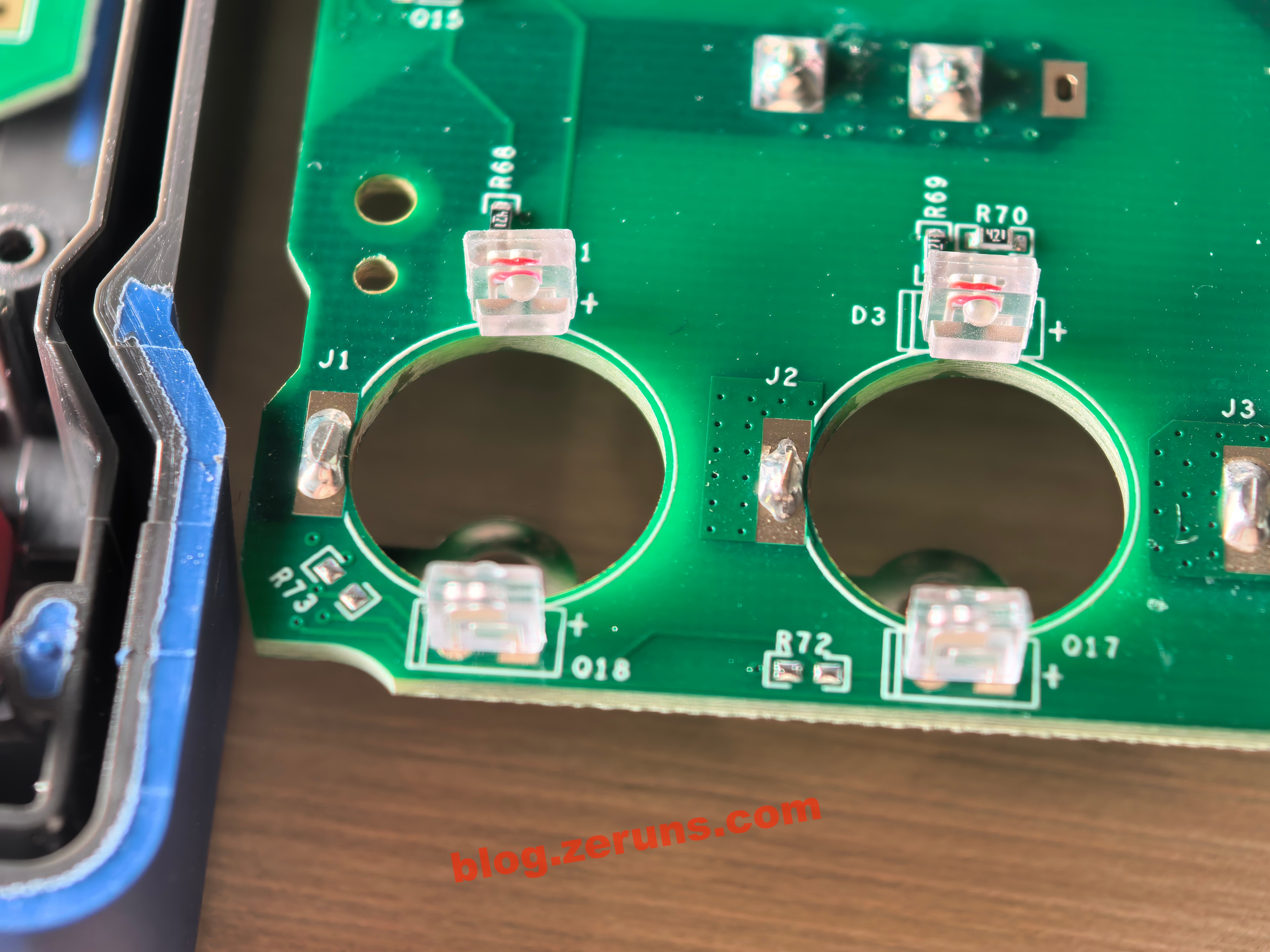 Tất cả các lỗ cắm que đo trên đồng hồ vạn năng đều có một cặp linh kiện, có vẻ là cặp hồng ngoại (phát và thu hồng ngoại), có lẽ dùng để nhận biết que đo cắm vào lỗ nào nhằm tự động chuyển dải đo, thiết kế này khá hay.