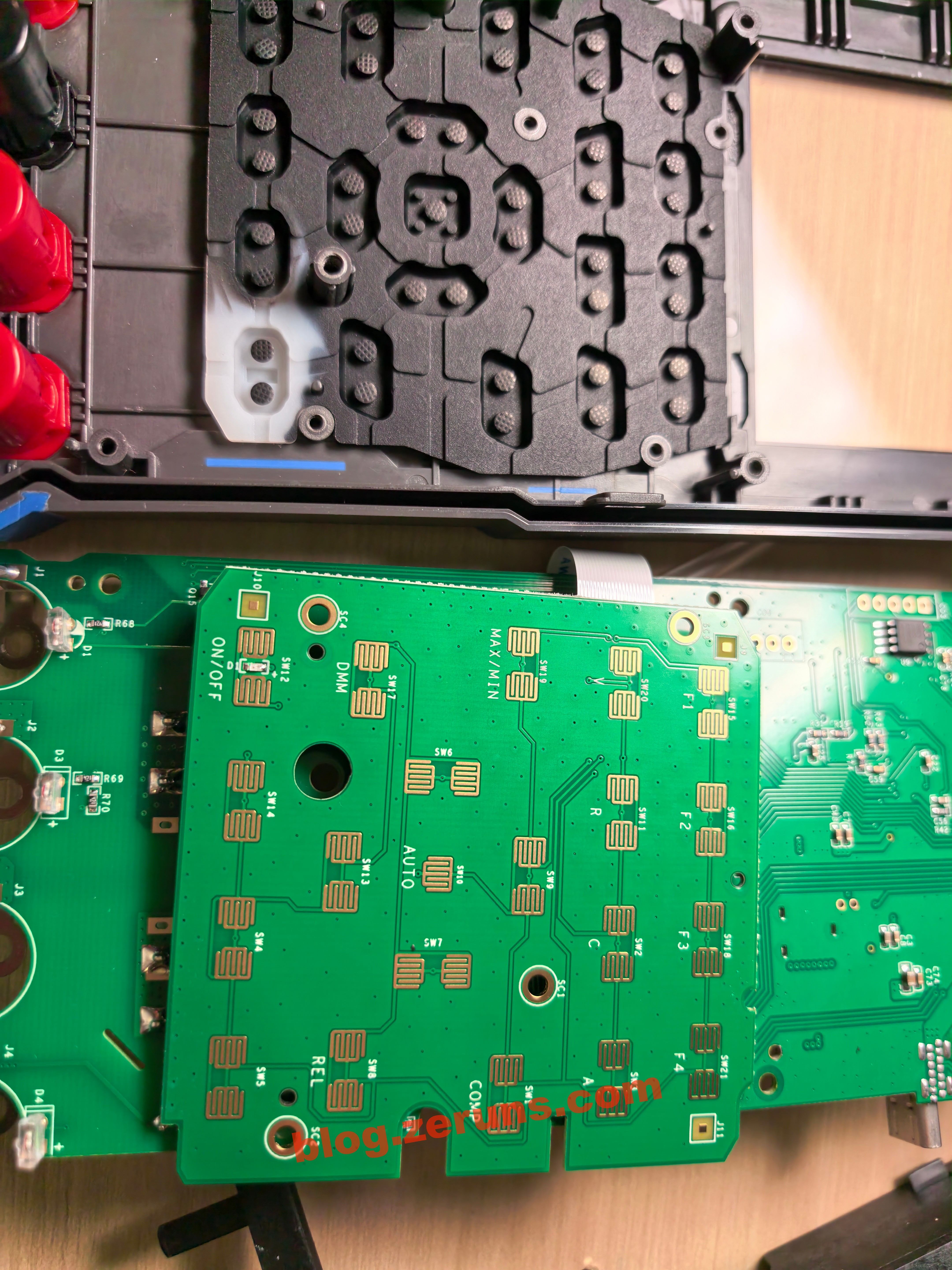Tháo bảng mạch chính của đồng hồ vạn năng ra, mặt sau có màn hình LCD và một bảng phím nhỏ, tất cả đều kết nối thông qua cáp FPC.