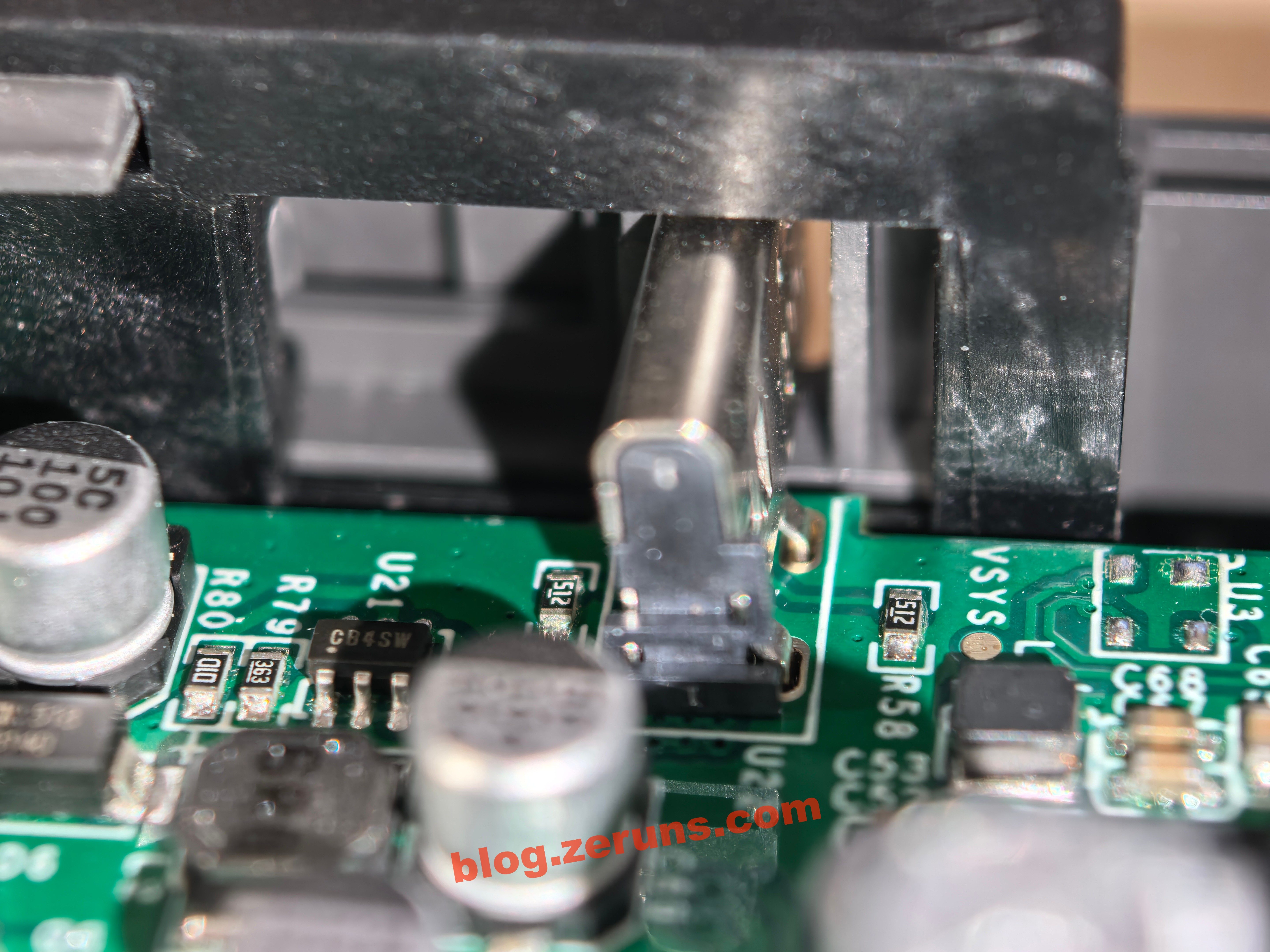 Một vài chip nhỏ và một loạt tụ điện phân, cùng hai cuộn cảm, phần này có lẽ là nguồn DCDC, cung cấp các mức điện áp khác nhau cho các phần mạch, các ký hiệu in trên chip lần lượt là S21P-A427A, 3FT1, GLF-S34, 5P02, CB4SW.