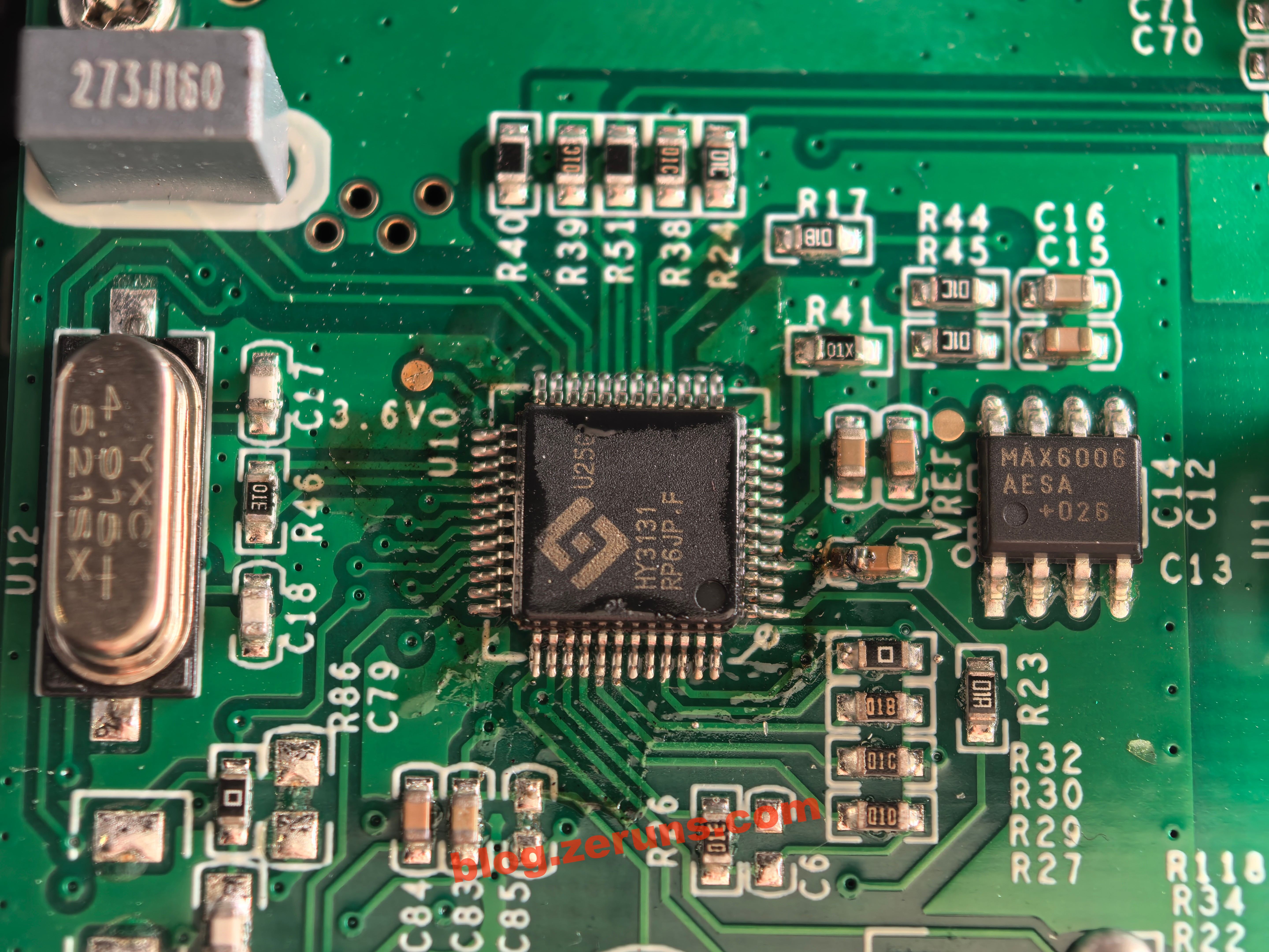 Chip 8 chân bên phải chip đồng hồ vạn năng có mã hiệu MAX6006AESA, đây là nguồn tham chiếu điện áp chính xác phân nhánh siêu tiết kiệm năng lượng cấp A của ADI (trước đây là Maxim), đầu ra cố định 1.25V, độ chính xác ban đầu ±0.2%, hệ số nhiệt ±30ppm/℃, dòng làm việc <1μA, dùng vỏ NSOIC 8 chân, không cần tụ điện ngoài, phù hợp với các ứng dụng đo lường chính xác tiêu thụ thấp, thiết bị cầm tay, tham chiếu ADC/DAC.