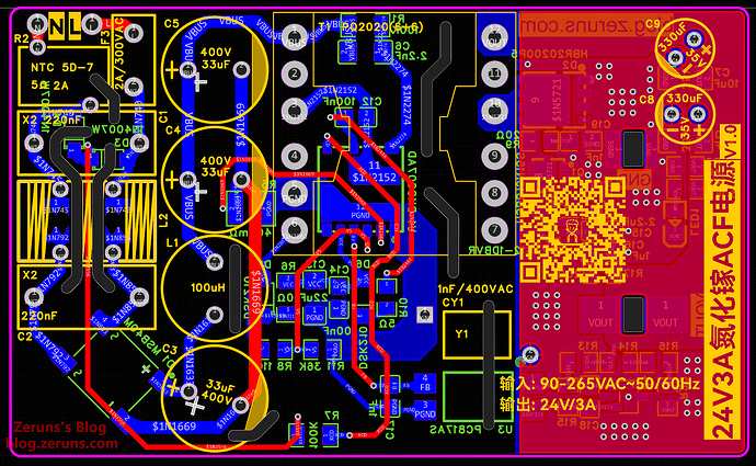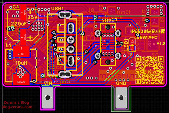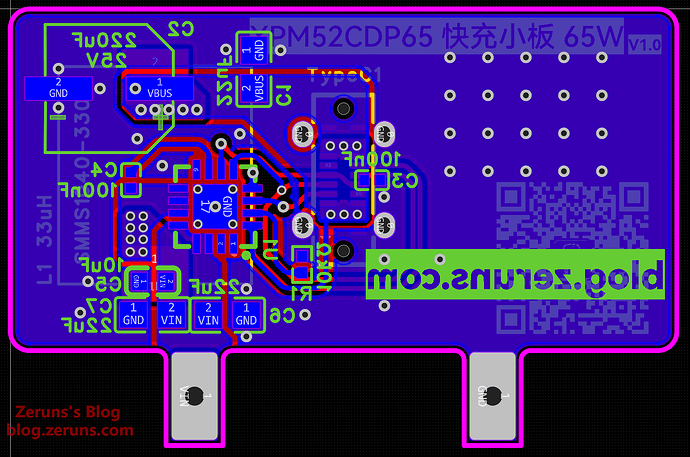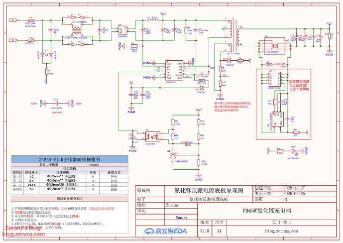 - 立创开源平台开源链接:https://oshwhub.com/zeruns/pd65w-gallium-nitride-charger