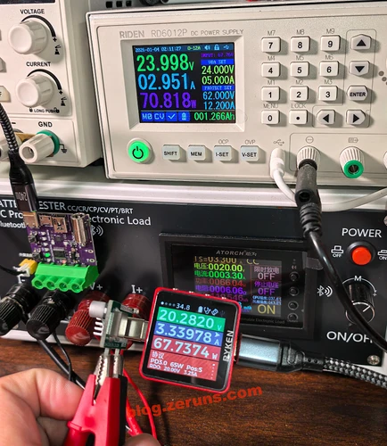 带负载测试,输入电压24V,PD诱骗输出20V,电子负载设3.3A电流,实测输出功率67.74W,输入功率70.8瓦,转换效率95.65%,表现还不错。