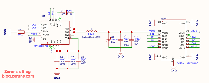 - XPM52CDP65芯片,Buck降压,内置MOS管,单Type-C口