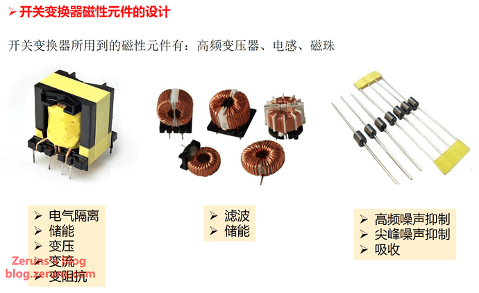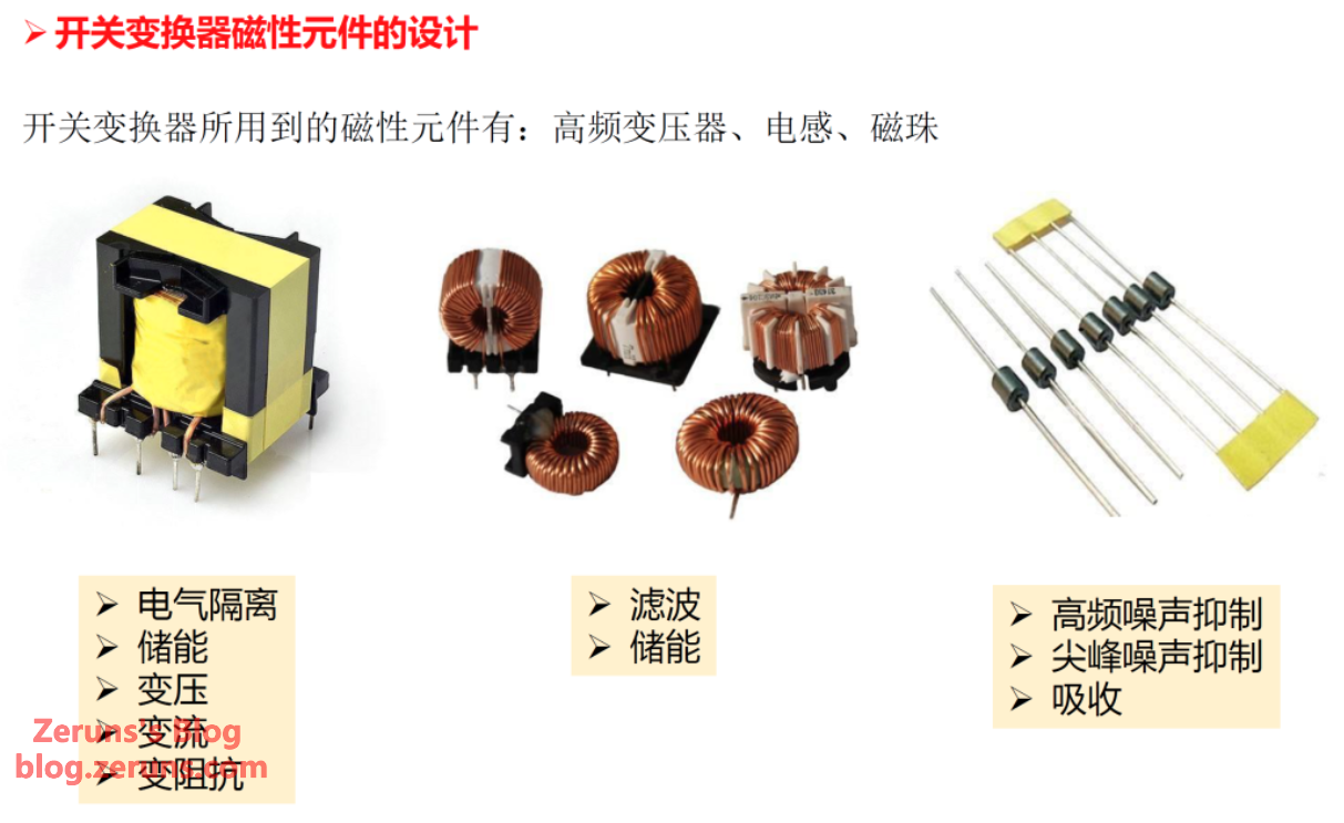 锰锌铁氧体 高频损耗低、μᵣ高(2000~20000)、绝缘性好、成本适中 Bₛ低(0.3~0.5T)、居里温度较低(180~250℃) 10kHz~5MHz 开关电源变压器、滤波电感、LED 驱动电源