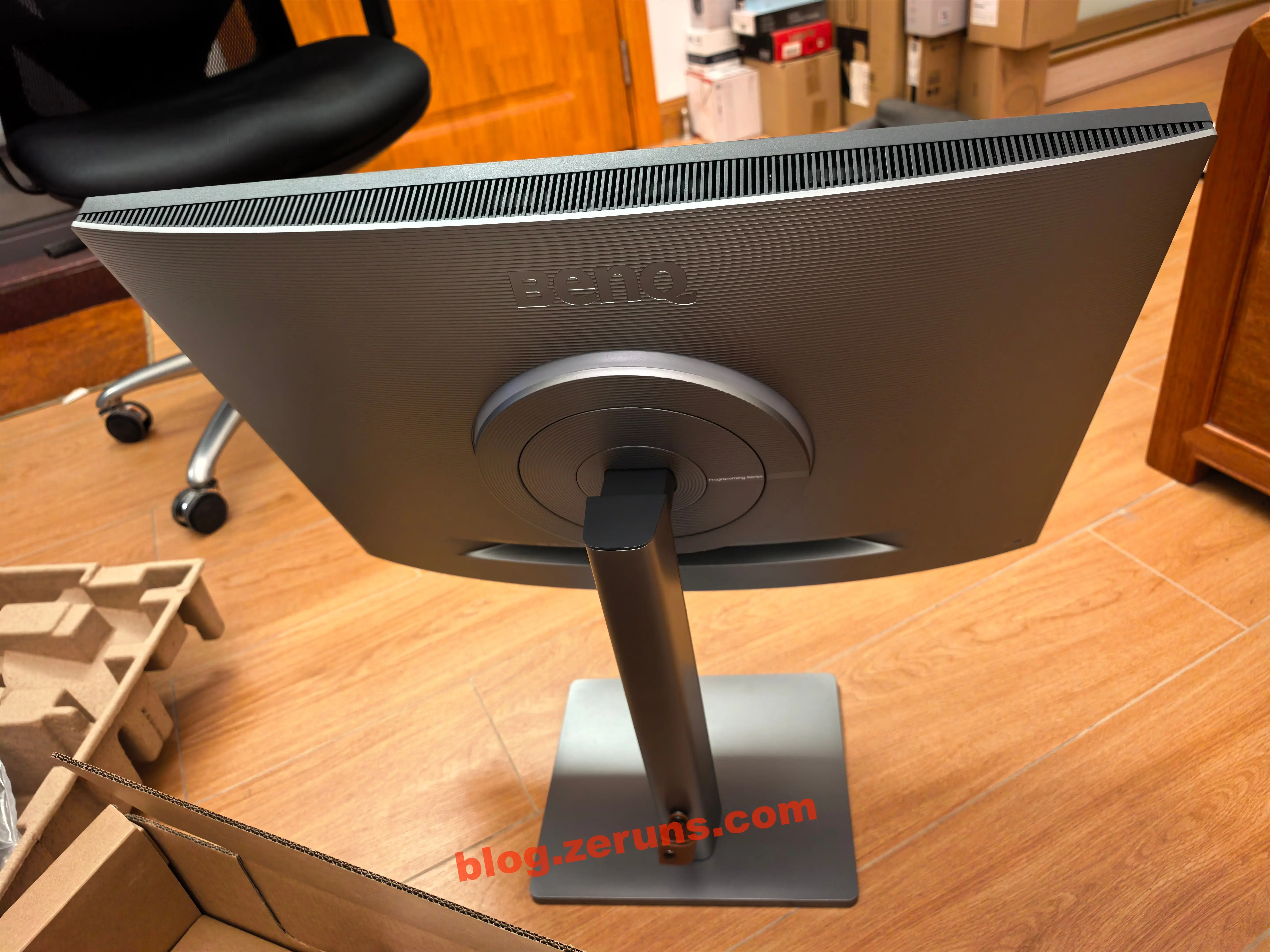 画面の背面—スタンド周囲に環境光リングがあり、ベンクはこれを「MoonHaloスマート環境光」と呼んでいます。