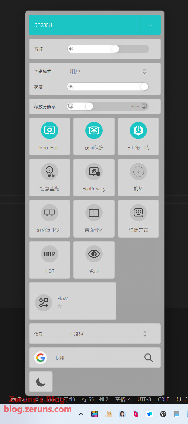 「コーディング - ダークテーマ」色モードを有効にした後の表示効果です。このモードは単なるソフトウェアフィルターではなく、BenQがハードウェアレベルでモニターの色を特化して調整しています。ユーザーがOSDメニューまたは専用タッチボタンで「コーディング - ダークテーマ」に切り替えると、モニターは直接パネルを駆動し、コードエディターでよく見られる構文要素(キーワード、文字列、コメントなど)に最適化された色、色温度、コントラストを実現します。この仕組みは、特定の色の彩度を強化しつつ、明るさ出力を精密に制御することで、コードと暗い背景との視覚的階層を inteligently に強化し、色の正確性を保ちます。私の普段使っているVSCodeのダークテーマと組み合わせると、最も直感的な感覚は「快適」です。ハードウェアレベルの最適化により、背景の黒がより深く純粋に見え、コードテキストと背景とのコントラストが効果的に強化され、構文ハイライトされた色が目立つ一方で、過度に刺激的ではありません。