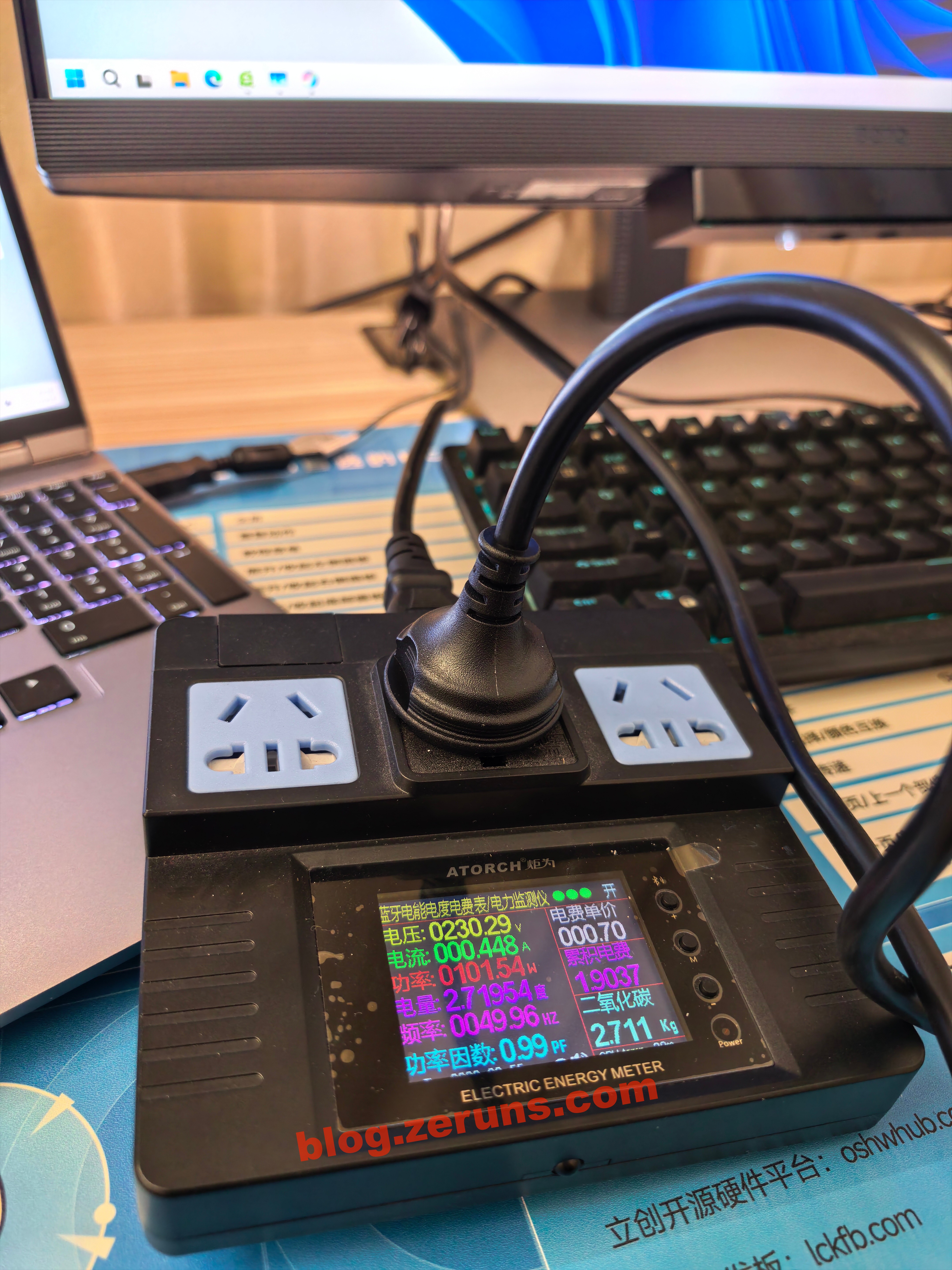 Type-Cでノートパソコンに接続した場合(ノートパソコンが約50ワット消費)、電力消費は約101ワットです。力率は0.99で、アクティブPFC回路を搭載していることを示しています。