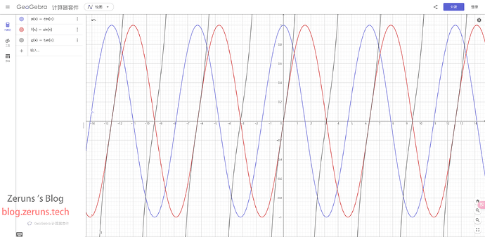 正切函数的图像是周期为 \pi 的波形曲线。它在每个周期内有一个竖直渐近线,对应于 \theta = \frac{\pi}{2} + k\pi,其中 k 是任意整数。在这些点上,正切函数的值趋向于正无穷大或负无穷大。