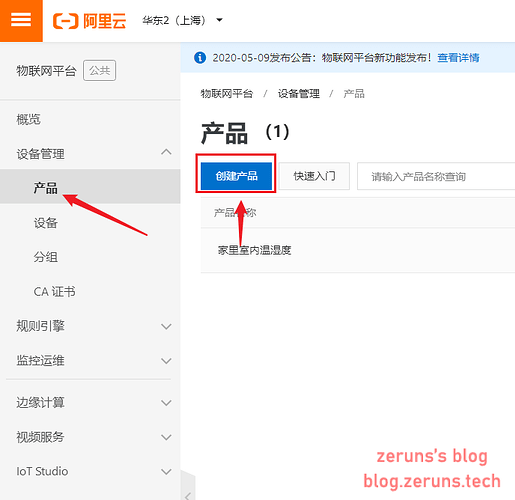 然后打开物联网平台的控制台:https://iot.console.aliyun.com/product