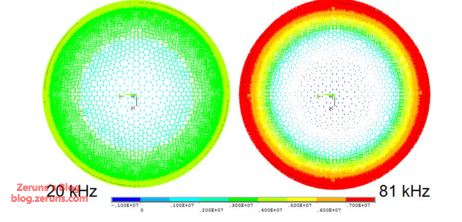 - Dòng trong cuộn dây là dòng cao tần, xuất hiện hiệu ứng da. Dòng không phân bố đều trong toàn bộ tiết diện dây, mà tập trung ở bề mặt (“lớp da”), mật độ dòng càng lớn ở bề mặt, phần lõi dây thực tế có dòng rất nhỏ. Hiệu ứng da làm giảm đáng kể diện tích sử dụng của dây dẫn. Do đó, dùng nhiều sợi dây nhỏ (dây Litz) thay vì một sợi dây dày giúp giảm hiệu ứng da. Tính độ sâu da D_m (đường kính tối đa):