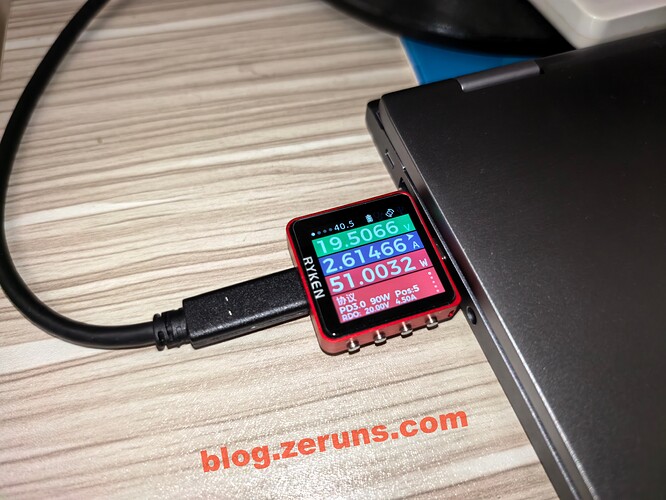 显示器C口连接我笔记本时的电压电流和功率(笔记本满电)