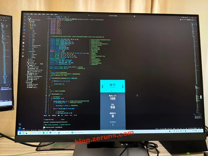 下图是开启“编码-深色主题”色彩模式后的效果。这一模式并非简单的软件滤镜,而是明基在硬件层面对显示器的色彩进行了专项调校。当用户通过OSD菜单或专用的触控键一键切换至“编码-深色主题”时,显示器会直接驱动面板,对代码编辑器中常见的不同语法元素(如关键字、字符串、注释等)进行针对性的色彩、色温及对比度优化。其原理在于通过增强特定色彩饱和度并精准控制亮度输出,在确保色彩准确性的同时,智能地强化代码与深色背景之间的视觉层次。与我惯用的VSCode深色主题叠加后,最直观的感受是“舒服”:得益于硬件级的优化,背景的黑色显得更为深邃纯粹,而代码字体与背景的对比度得到了有效增强,语法高亮的色彩因此更为突出且不刺眼。