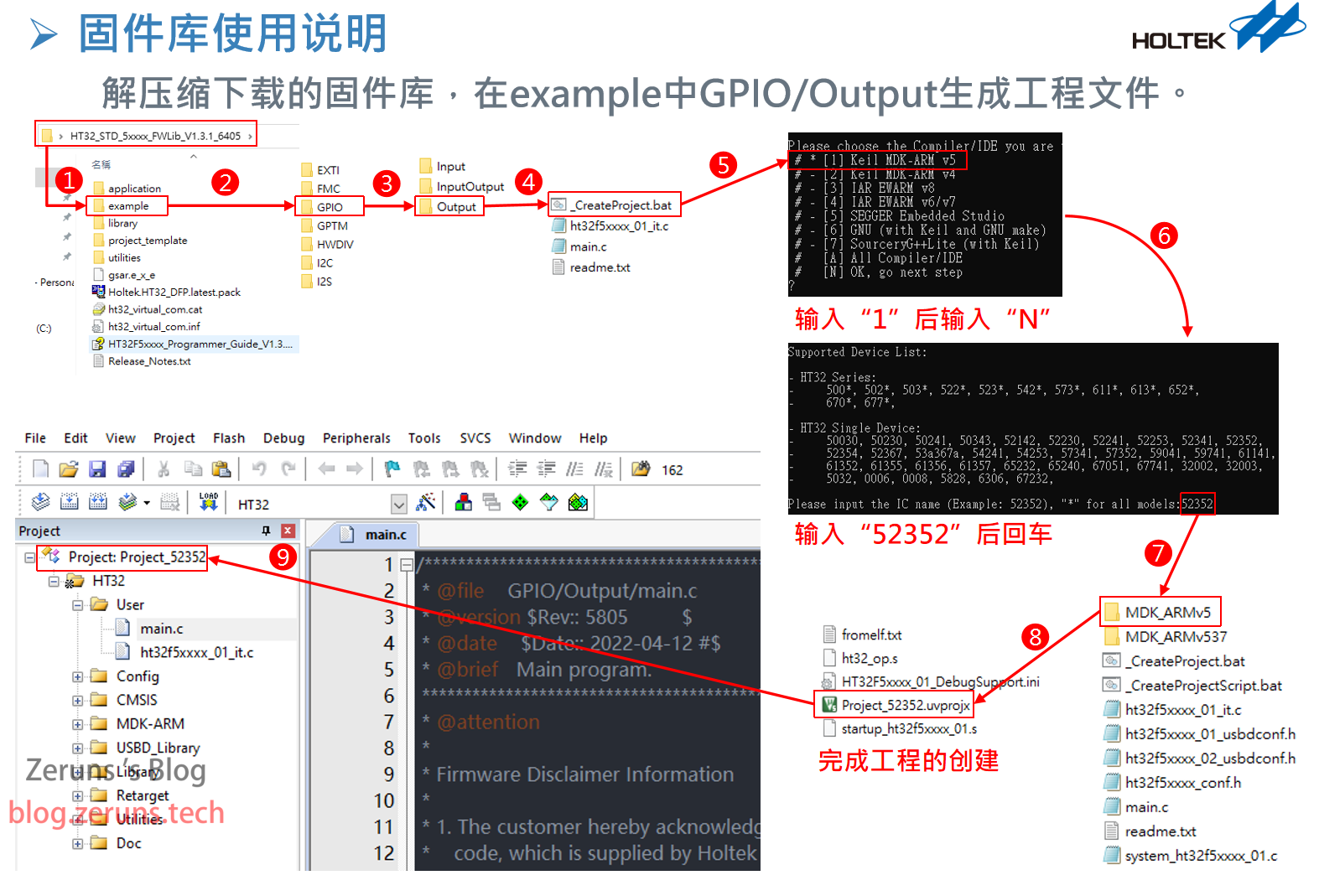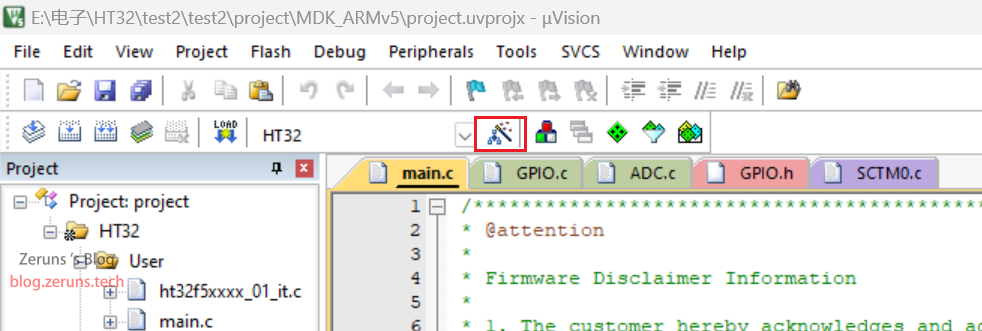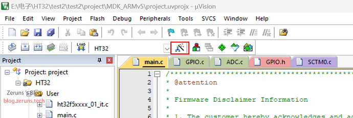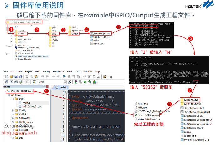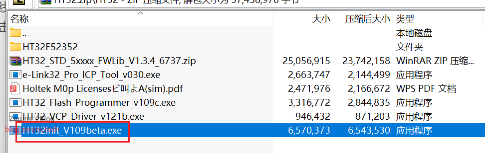 最后需要建一个工程项目来检查是否可以一键下载程序到合泰单片机,建项目可能比较难,但是不要紧,可以把官方的例程改一下测试,官方例程就在那个HT32_STD_5xxxx_FWLib_V1.3.4_6737.zip固件库包里。