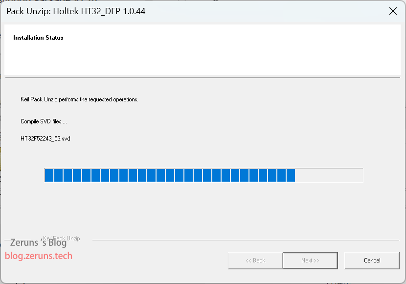 安装HT32的Keil支持包,HT32_STD_5xxxx_FWLib_V1.3.4_6737.zip压缩包中的Holtek.HT32_DFP.latest.pack,双击运行后一直下一步即可。